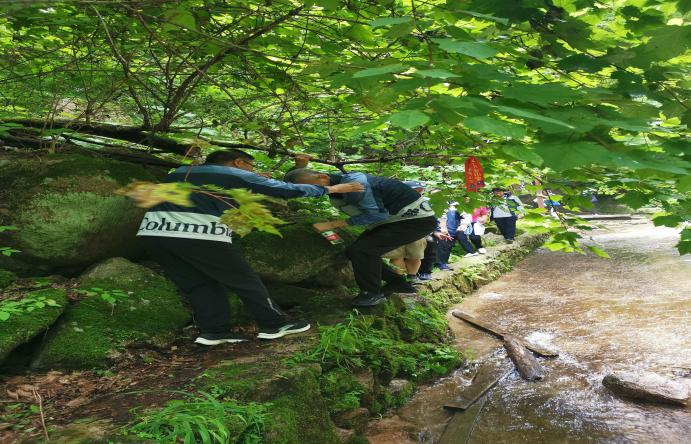 全体成员首先来到西征会议遗址,重走抗联路,在坎坷崎岖的山路中,感悟革命精神、赓续红色血脉、汲取奋斗力量,做到初心如磐,牢记使命在肩。