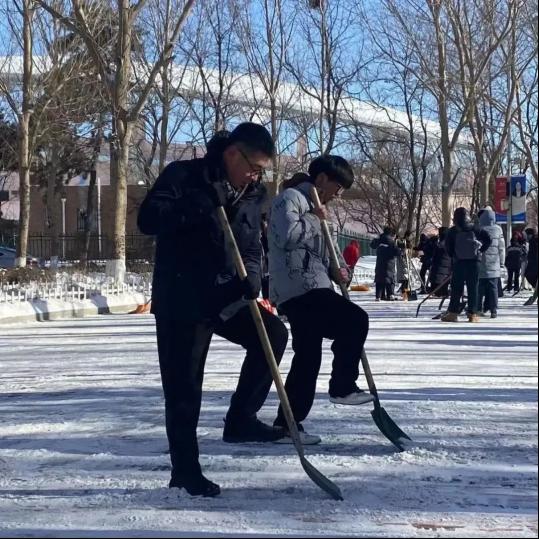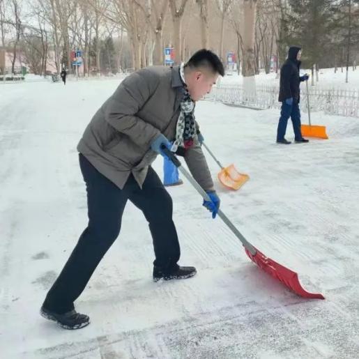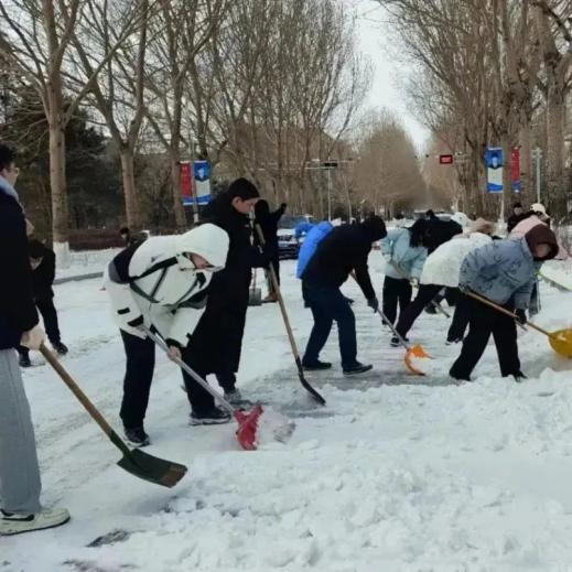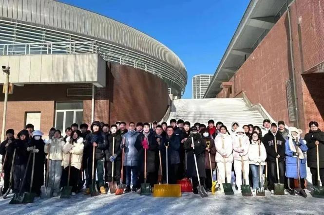 北国风光,干里冰封,万里雪飘。为了保障校内师生的出行安全,强化大学生使命担当,77779193永利院长叶长龙、党委书记孙雪玲、党委副书记潘起波、副院长王传云、21级辅导员王治宇及其他教职工们带领全院学生开展扫雪志愿活动。