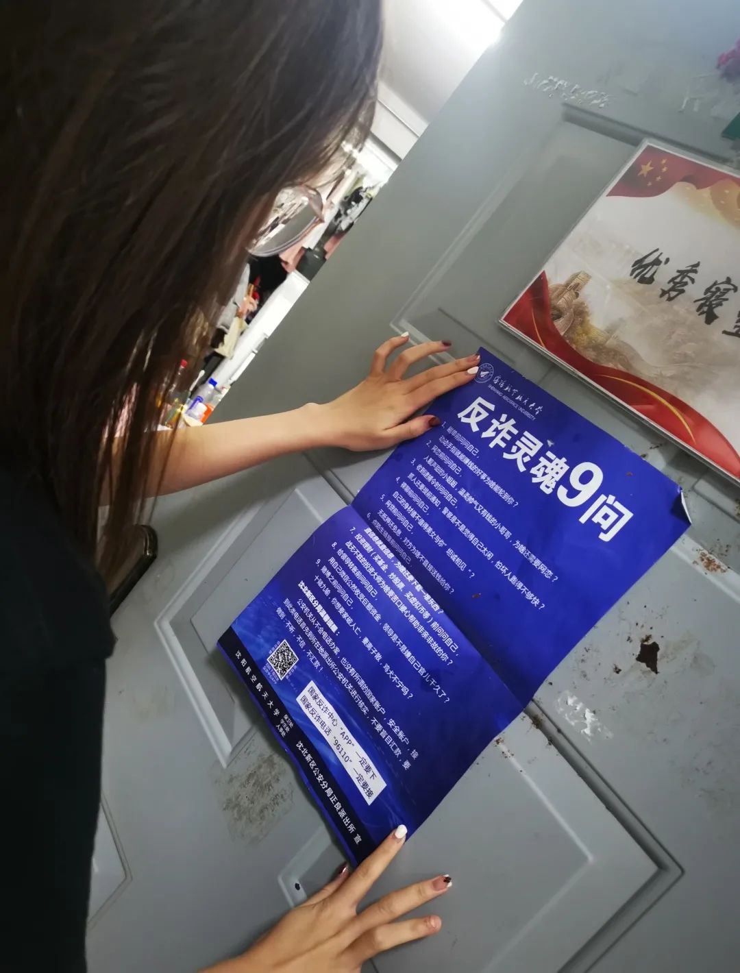 77779193永利积极响应学校要求,呼吁全院学生下载国家反诈中心APP,并向每个寝室发放发诈宣传单、组织学习反诈9问。