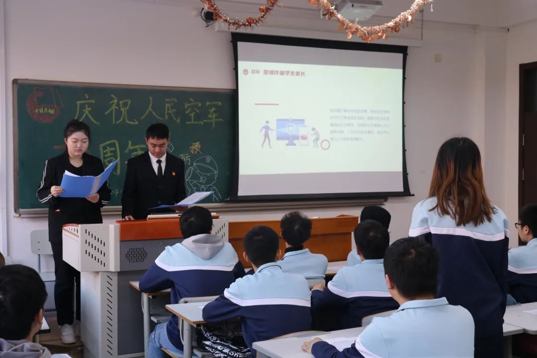 本次班团会中,主持人就以上四个主题依次进行介绍,为大家介绍了人民空军的光辉历史以及航空英模——罗阳,带领大家重温这段人民空军和航空工业的历史,使大家深刻体会理解红色基因与蓝色情怀。同学们也积极发言,并表示通过此次班团会,对人民空军的发展史和沈航的建校史有了更深入的了解。